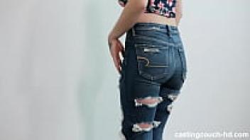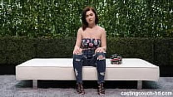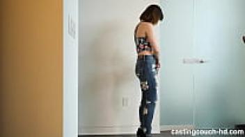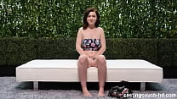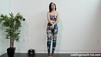 At the PORN casting, a sexy teen wearing spandex leggings and outfitted in love