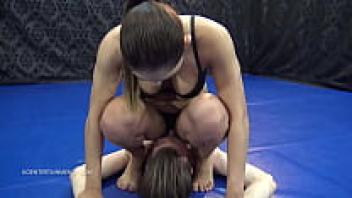 She is destroyed by a guy in mixed wrestling.