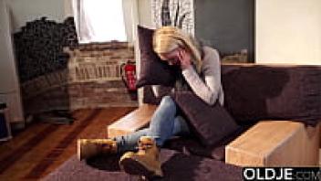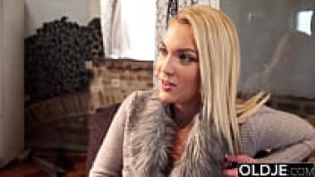 elderly vs young porn: the girl licks the elderly man's cock and swallows cumshot.