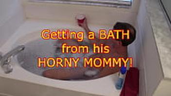 Mom bathes her stepson.