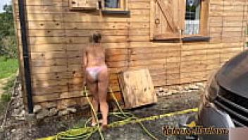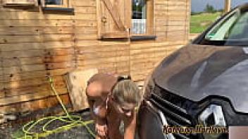 Car Washing in a Bikini and Nude Push my tits to glass, play with water foam, and more. Additional