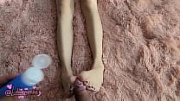 Asian teen girl wearing nylons and sporting tiny tits receives a facial