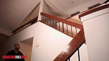 An angry blonde white female confronts a black guy upstairs, and throughout the confrontation, she is roughed up very severely.