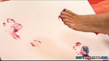 This stunning brunette hottie allows her foot fetish boyfriend to worship her feet and adores her missionary.