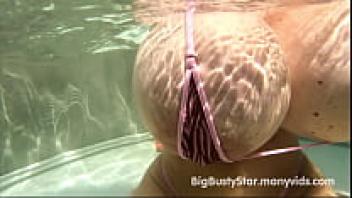 BigBustyStar, also known as Penelope Black Diamond, flaunts her enormous tits in a little Wicked Weasel bikini.