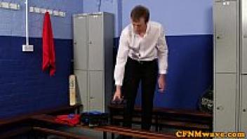 Before switching, Cfnm wanks restrained the sub.