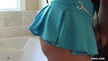 A curvaceous brunette wearing leather boots receives a lot of affection.