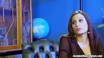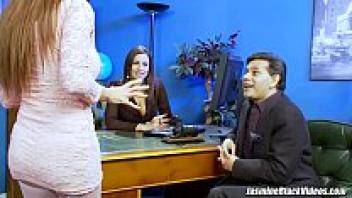 Her employer is seduced by a blonde Milf secretary who has enormous tits.