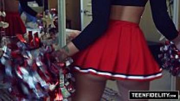 This is the first time a silly Follege cheerleader has asked for a trick or treat. She is tricked by an elderly man who has his cock in her mouth. The Great Deepthroat. His big cumshot covered her adorable face and uniform. Teen Perfect Blowjob for Halloween.