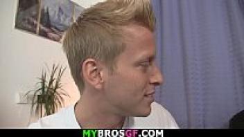 Legs are spread for him by a friend's girlfriend.