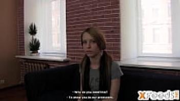 At a porn audition, a cute newcomer is adored by a handsome agent.