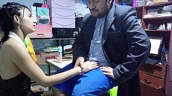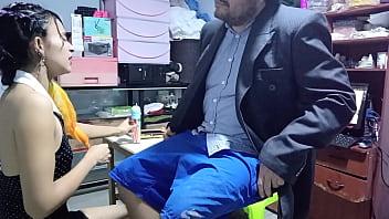 Secretary goes looking for a job and the boss ends up loveing her to secure the position, what a blowjob