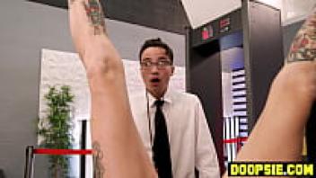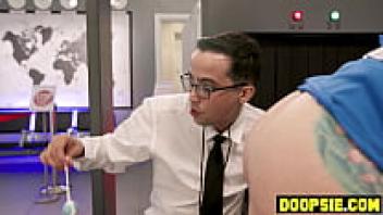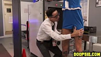 A security guard with a large dick is adored by a flight attendant with kinky enormous boobs.