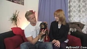 The redhead German girlfriend joined the FFM threesome after catching her boyfriend cheating.