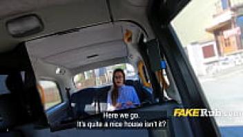 In the taxi, a flawless girl with flawless skin releases her breasts.