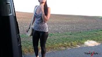 Cum everywhere for a big-legged girl who is persuaded to fall in love with a stranger in a van