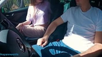 Teen had little money and had to use her hand job to pay for a taxi. ProgrammersWife CUMSHOT in a car