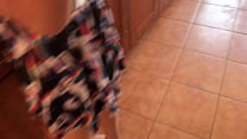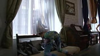A student babysitting in a skirt and stockings took a creampie in her tight pussy and sucked a large cock.