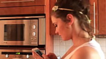 18-year-old AMATEUR babe with loud groans and a huffing pillow