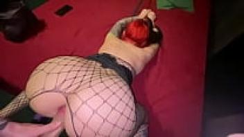 Milf with a hairy pussy and a luscious ass in stockings is double penetrated. Butt plug with big dildo. - SweetWetElla