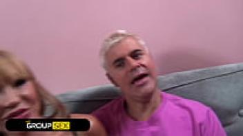 A fortunate elderly man has passionate sex with a curvaceous, blonde BBW woman.