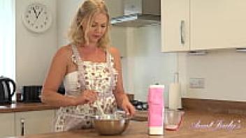 In the kitchen is Aunt Judy, a charming 43-year-old British MILF Abi.