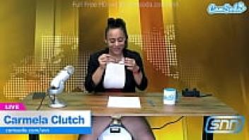Orgasms during live broadcasts by Carmela Clutch, a news anchor