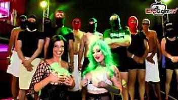 A young German woman uses her entire hand to fist an amateur gangbang party.