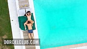 Having sex by the pool with a curvy MILF