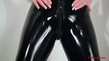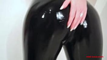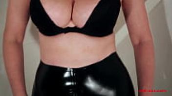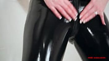 Skintight latex pants with a seductive MILF Red XXX