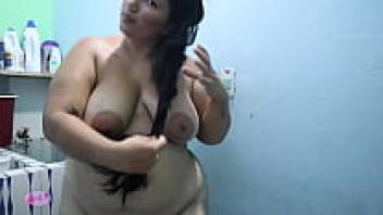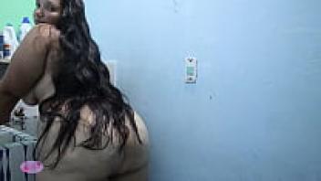 A plump Colombian girl using a squirt for masturbation