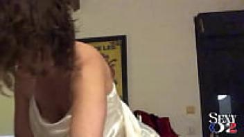 French beauty wearing a white satin dress, satin panties, a garter belt, stockings and heels, a blowjob, rimming, dog-style love, and dirty talk in 1637(ip) 01