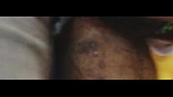 A fishnet-clad horny college girl was rough-loved and cummed on her booty.