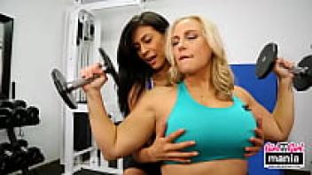 Girl-Girl Gym Angel Allwood Trains Tongue by Adoring Nikki Knightly!