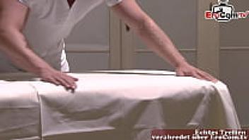 German blonde thin adolescent persuaded into sex with oil massage.