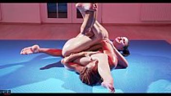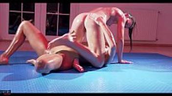 Sexfight in oil with a lesbian squirting