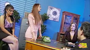 A foursome in an office with two attractive chicks, a psychiatrist and his secretary.