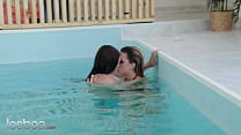 Lesbea Katarina Rina and Taylee Wood have intense lesbian action poolside, licking and fingering orgasms.