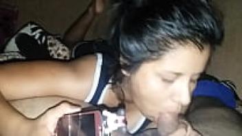 Husband speaks while she sucks.