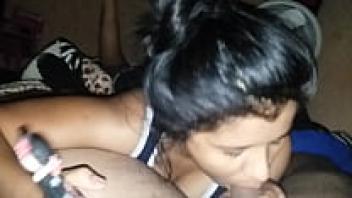 Jeni Angel, an all-natural ebony teen, gives a blowjob.