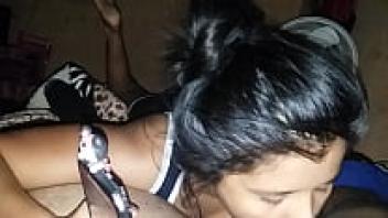 An attractive amateur deepthroat blowjob with a teen's big ass in panties