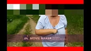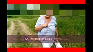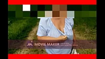 displaying her tits outdoors.