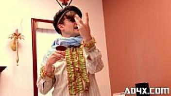 Naughty Khloe Kapri slurps cowgirl and stepbro jizz.