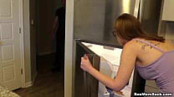 The cleaning boy is being sucked by MommyBB, a young, mature, blonde MILF.