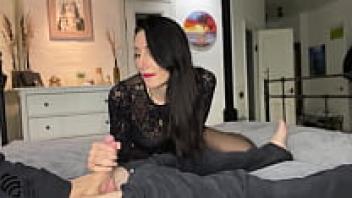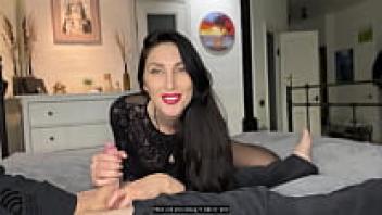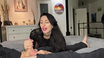 Stepmother inserts my condom inside her.