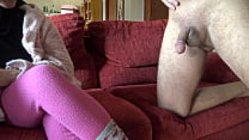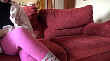 On the couch, having romantic sex with a gorgeous teenage girlfriend