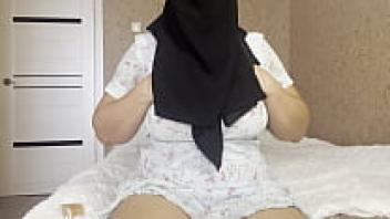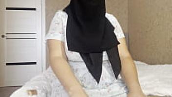 While masturbating her pussy, an Arab woman wearing a headscarf experienced a double orgasm.