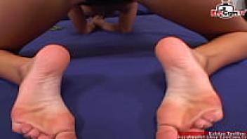 Brunette Girl with Perfect Natural Tits Gets a Cumshot on Her Sexy Feet