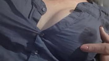 Big Natural Tits babe, she is talking naughty, and she is doing a job with her dildo.