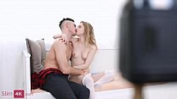 A young blonde with a cool ass and a sexy face is adored by an elderly man in every way.